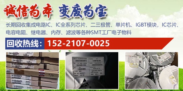 上海滿(mǎn)芯再生資源回收有限公司專(zhuān)業(yè)回收ADI系列芯片、內(nèi)存芯片、三星K9系列內(nèi)存、TIST、MTK、ALTERA、XILINX、ATMEL、PIC、STC、STM32F系列單片機(jī)等一切電子料;長(zhǎng)期收購(gòu)電子元器件、回收ic芯片、電容電阻、二三級(jí)管、繼電器、內(nèi)存、濾波、晶振等各種SMT工廠(chǎng)電子物料;長(zhǎng)期回收集成電路IC、IC全系列芯片、二三極管、單片機(jī)、IGBT模塊、內(nèi)存FLASH、DDR、MC